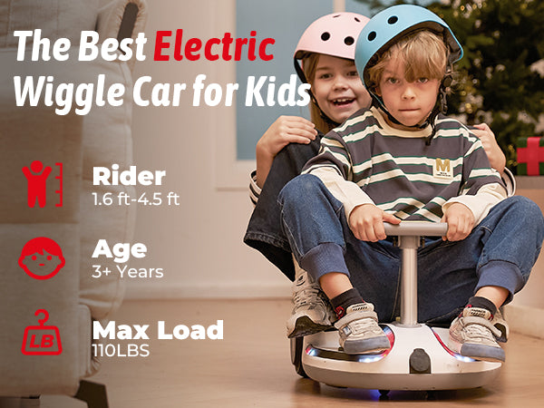 TC3 Electric Wiggle Car 4 in 1 Ride on Toy 3 Speed Modes For Ages 3+ with Lithium Rechargeable Battery&Pull Rope