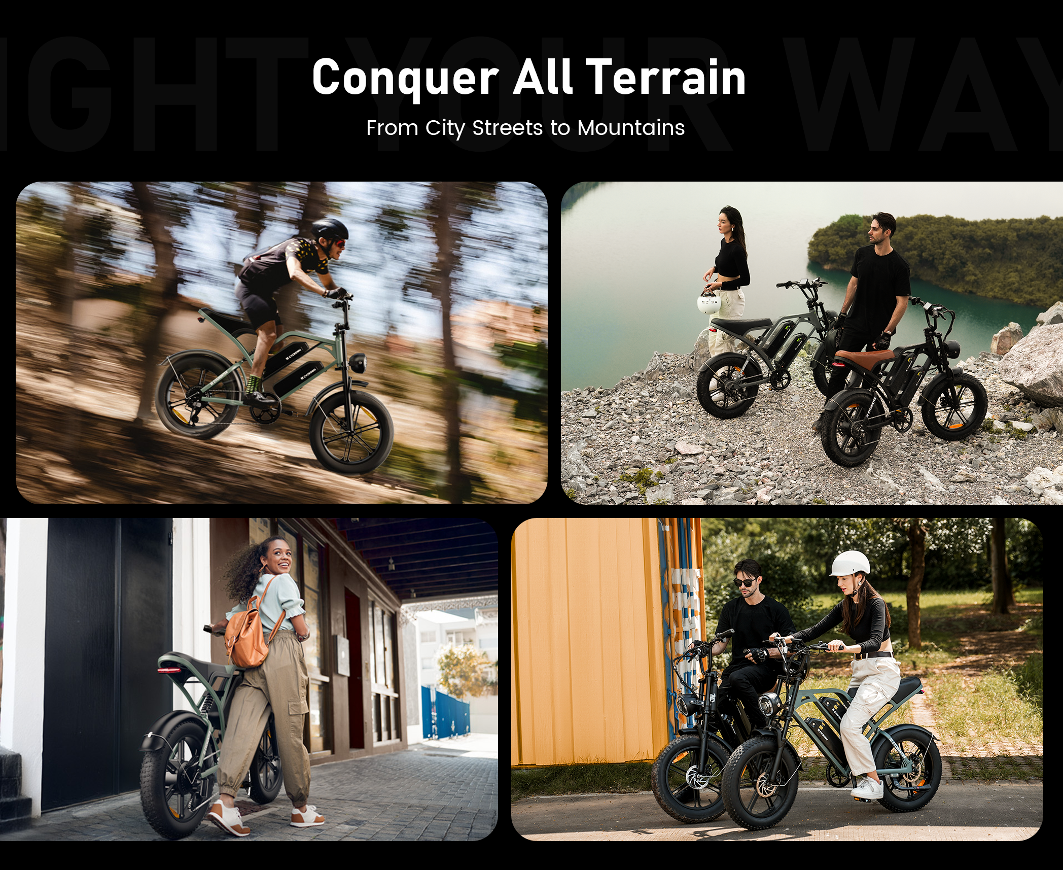 Featuring a powerful Peak 1000W motor, it reaches top speeds of up to 28 mph with impressive acceleration in just 3.8 seconds. Whether speeding down country backroads or tackling challenging trails, its climbing capability conquers even the steepest 30° grades.